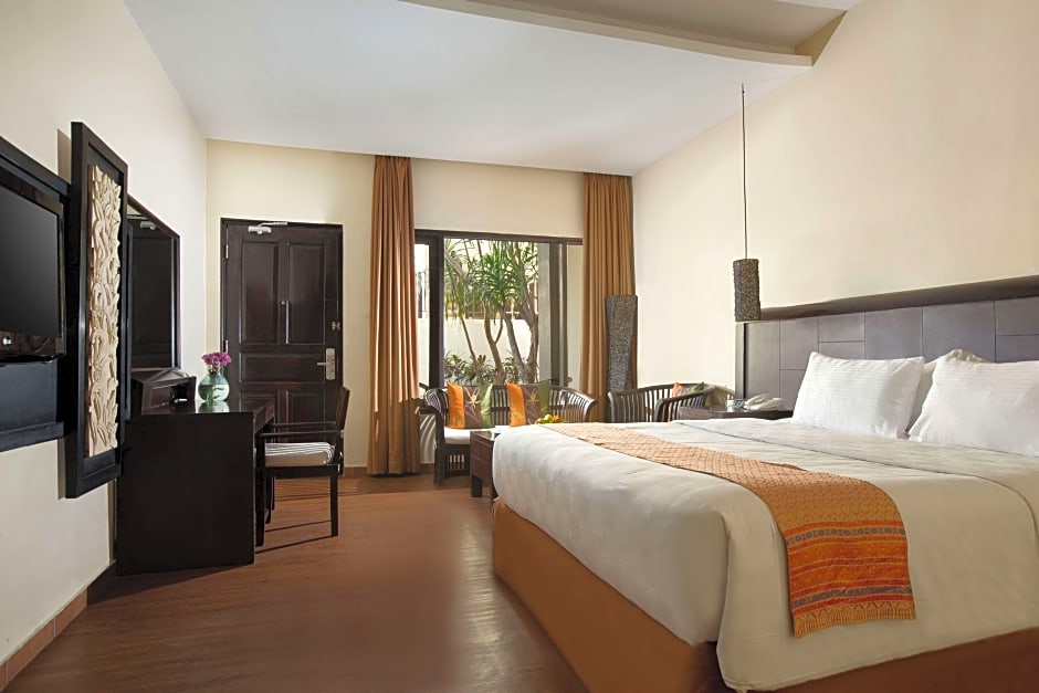 deluxe double is 377 square feet and includes a double bed 131-150 width plus terrace, extra beds on demand, desk, satellite tv , cable tv, hairdryer, tea and coffee making facilities , ironing set, safe, and bathrobes.